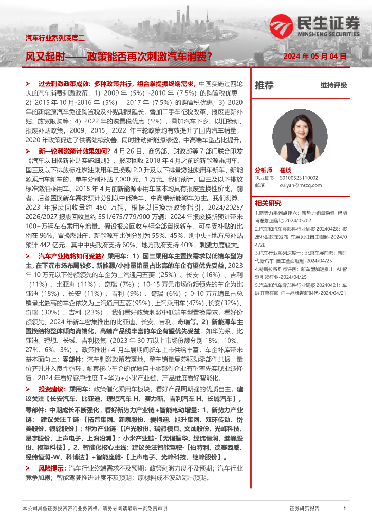 民生证券:汽车行业系列深度二:风又起时——政策能否再次刺激汽车消费?.pdf