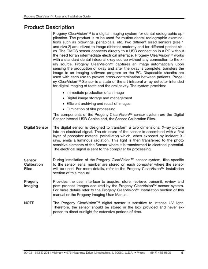 Progeny ClearVision™ 数字传感器系统用户和安装指南.pdf
