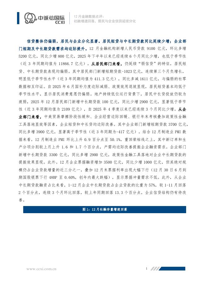 中诚信国际:2025年12月金融数据点评:社融增速回落,居民与企业信贷延续分化-260123.pdf