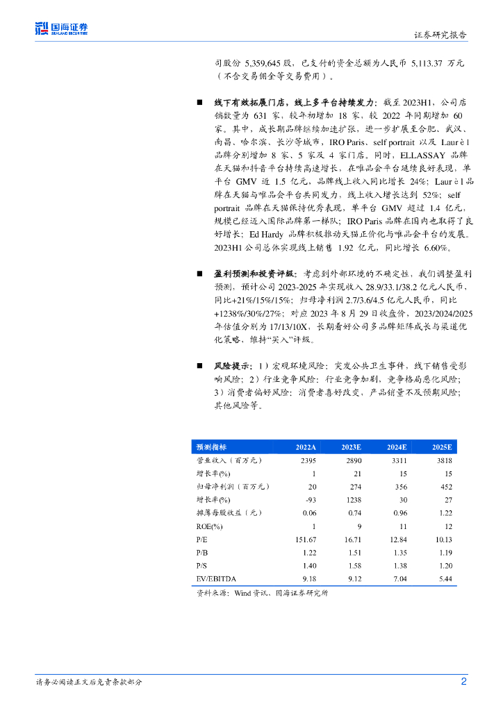 国海证券:歌力思(603808)-2023年中报点评:成长期品牌表现亮眼,盈利能力全面修复.pdf