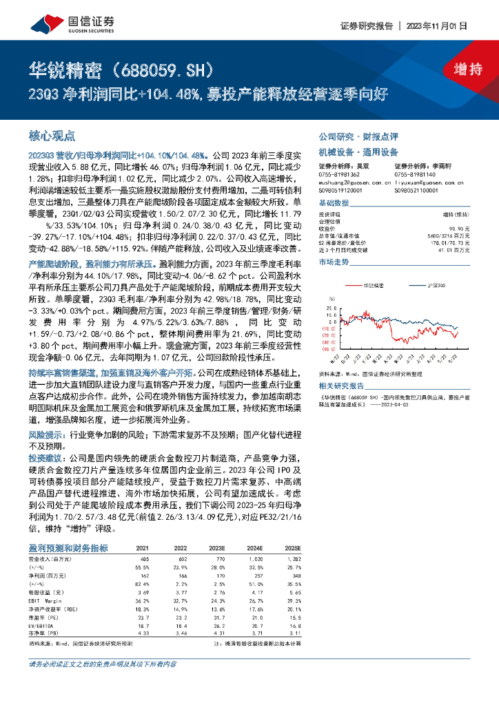 国信证券:华锐精密(688059)-23Q3净利润同比+104.48%,募投产能释放经营逐季向好.pdf