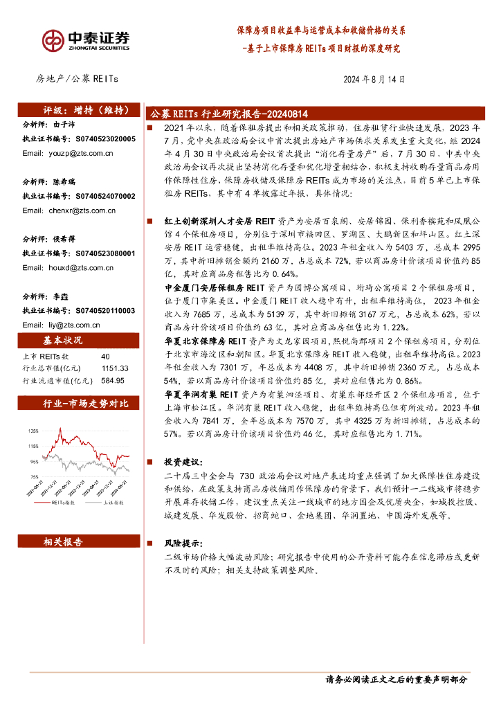 中泰证券:基于上市保障房REITs项目财报的深度研究:保障房项目收益率与运营成本和收储价格的关系.pdf