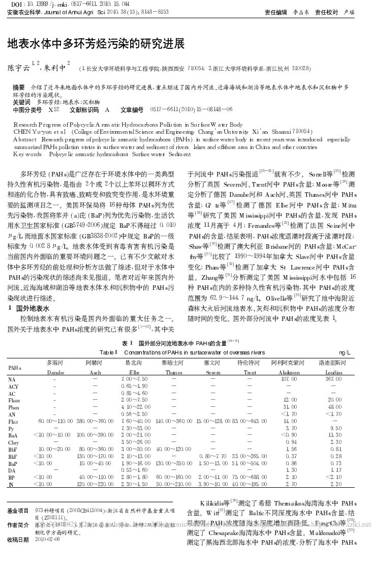 长安大学:地表水体中多环芳烃污染的研究进展.pdf
