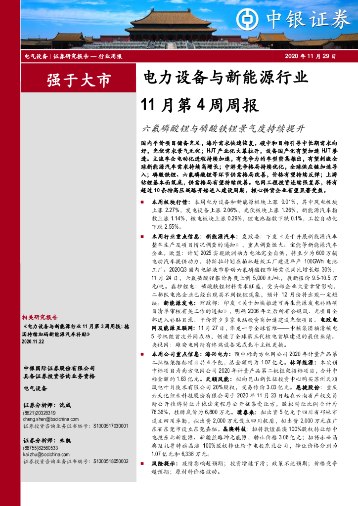 中银证券:电力设备与新能源行业11月第4周周报:六氟磷酸锂与磷酸铁锂景气度持续提升.pdf