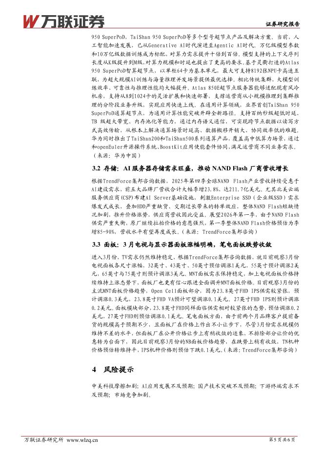 万联证券:电子行业跟踪报告:华为发布新一代算力底座,LCDTV面板价格延续上涨.pdf
