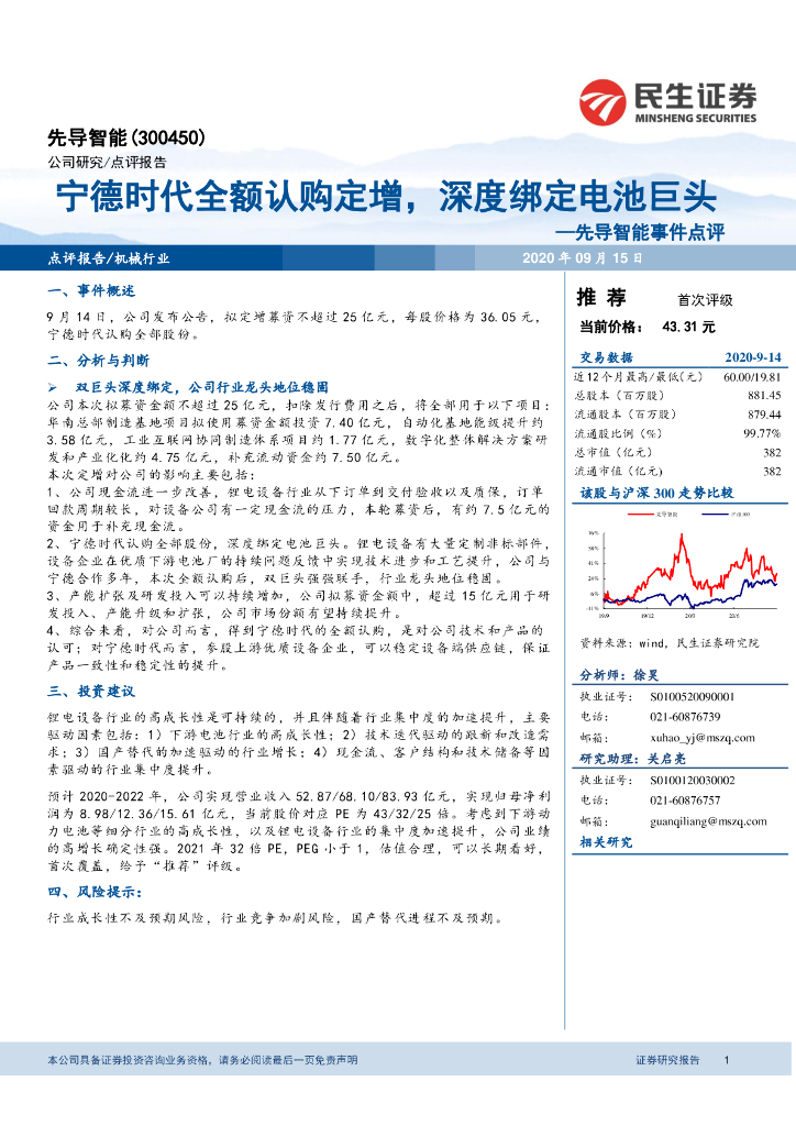 民生证券:先导智能事件点评:宁德时代全额认购定增,深度绑定电池巨头.pdf