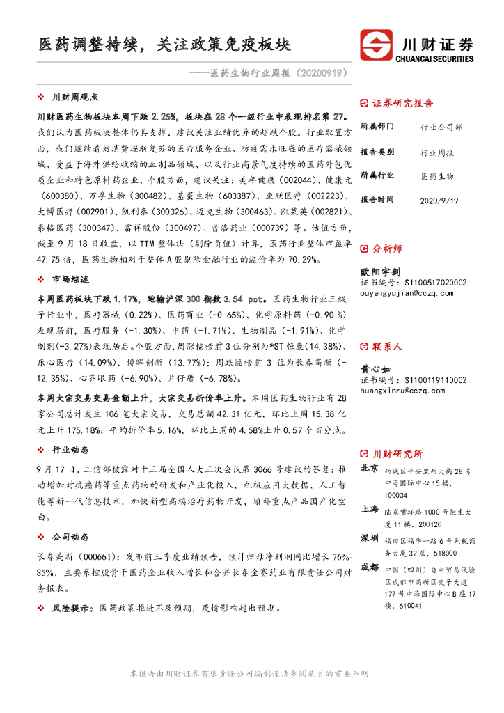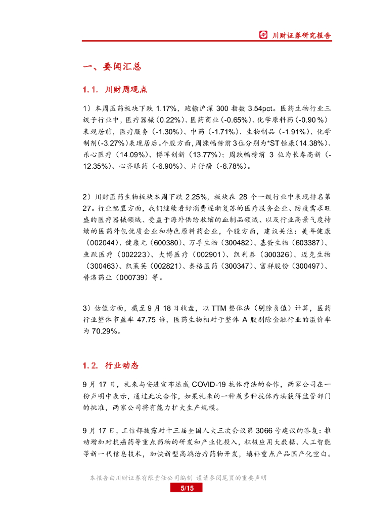 川财证券:医药生物行业周报:医药调整持续,关注政策免疫板块.pdf