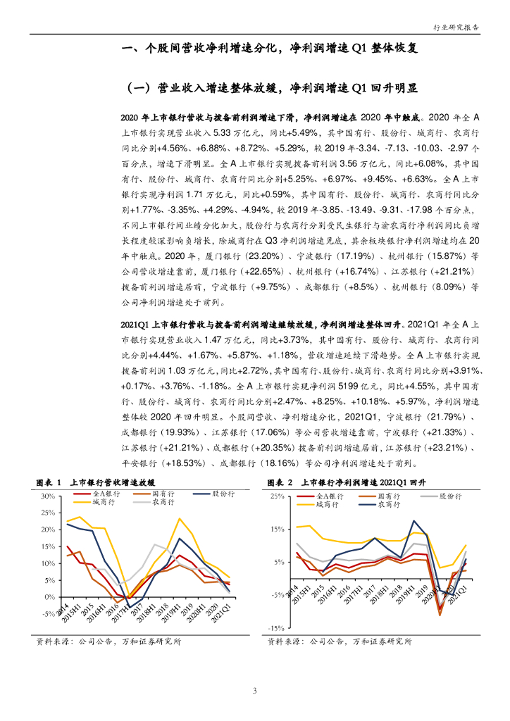 万和证券:银行业上市银行2020年年报及2021Q1季报综述:利润增速回升,不良改善.pdf