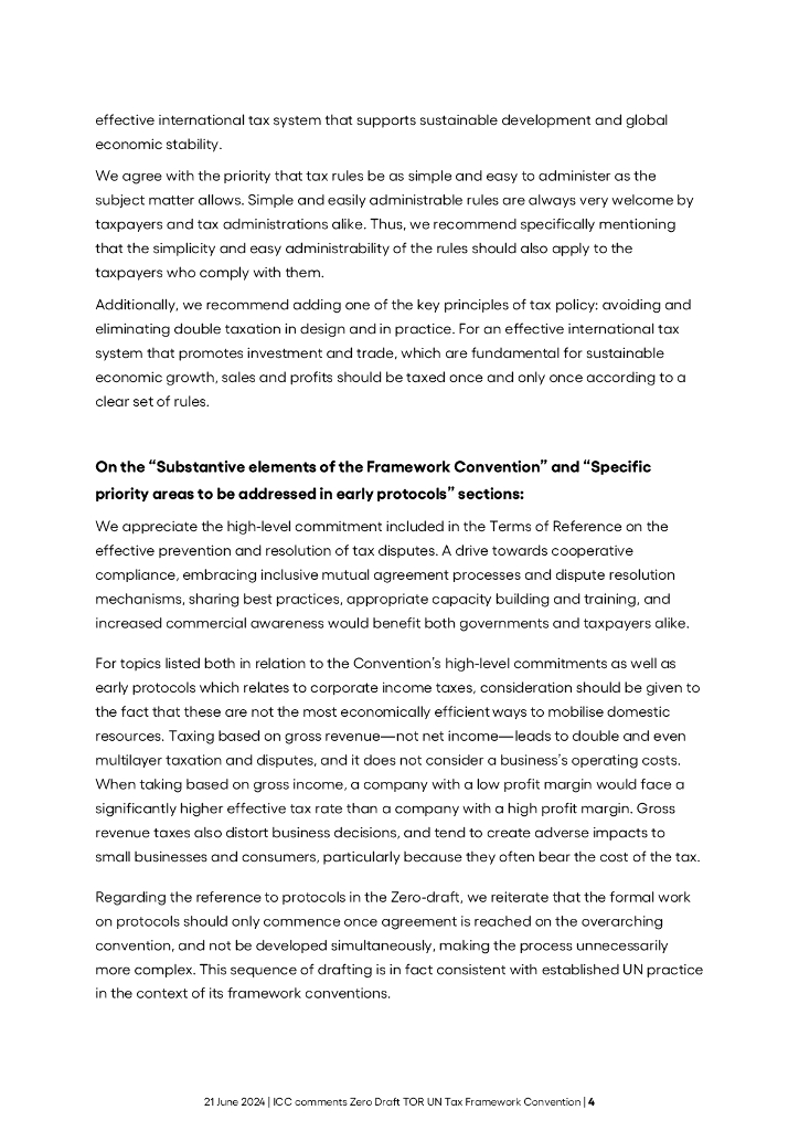 国际商会ICC:2024年国际商会就联合国税收框架公约职权范围零草案发表评论(英文版).pdf