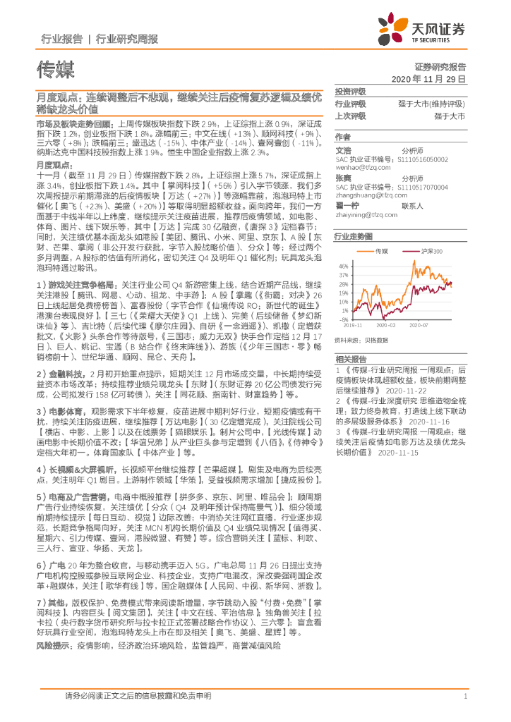 天风证券:传媒月度观点:连续调整后不悲观,继续关注后疫情复苏逻辑及绩优稀缺龙头价值.pdf