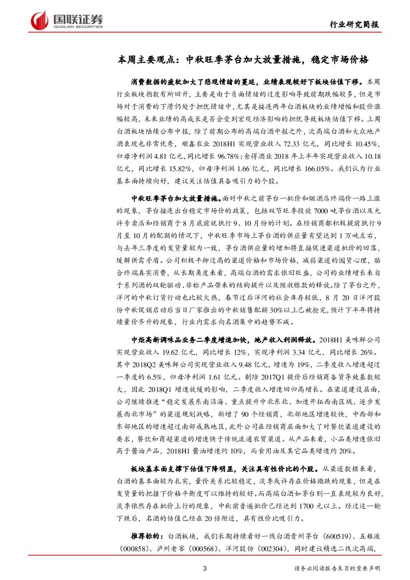国联证券:食品饮料行业2018年第33期:中秋旺季茅台加大放量措施,稳定市场价格.pdf