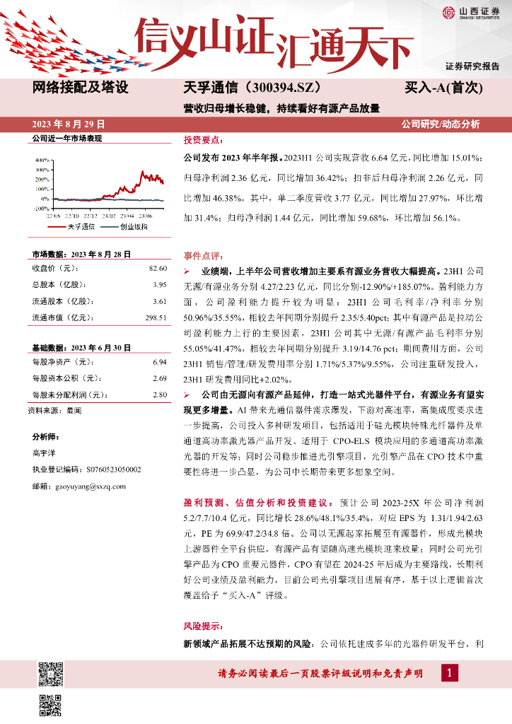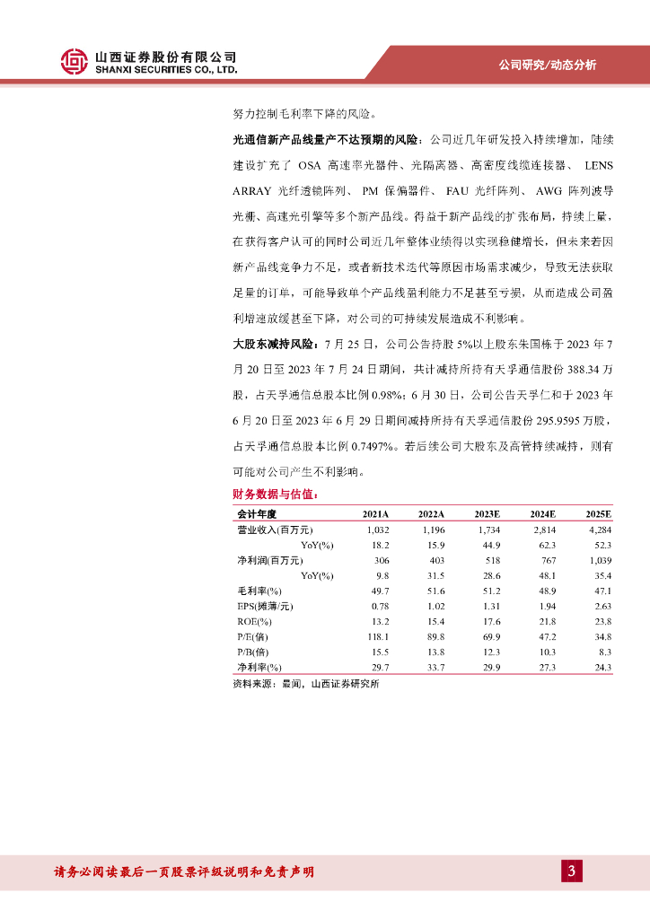 山西证券:天孚通信(300394)-营收归母增长稳健,持续看好有源产品放量.pdf