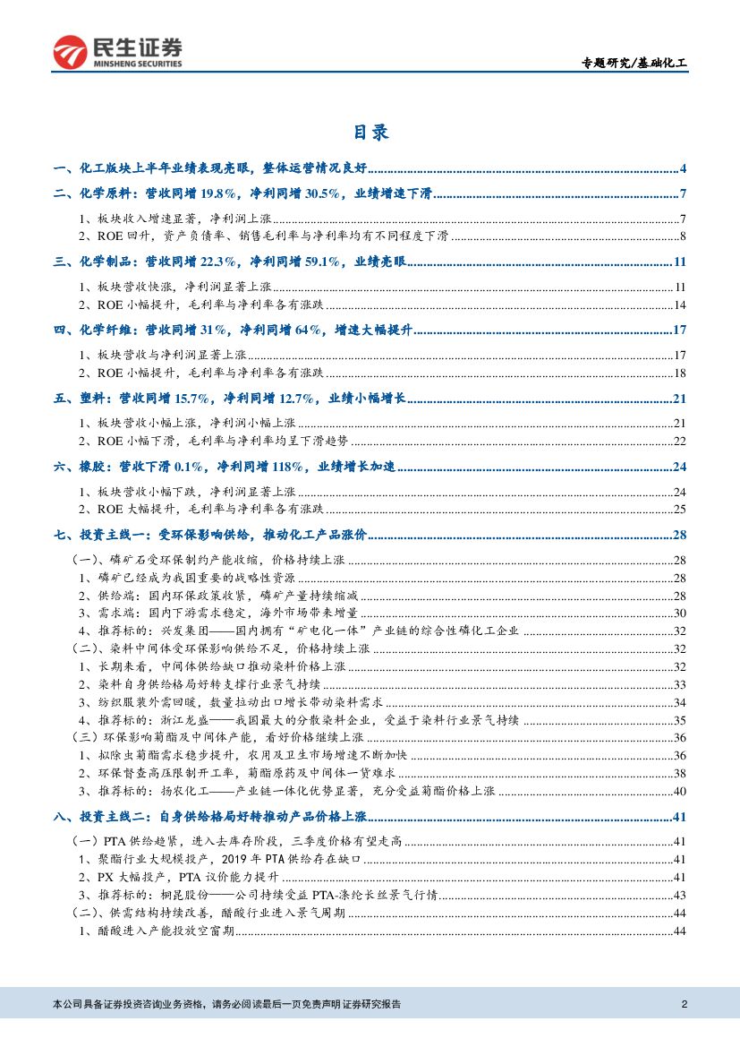 民生证券:化工行业中报业绩回顾:维持高景气度,关注受环保影响及供给格局好转的产品.pdf