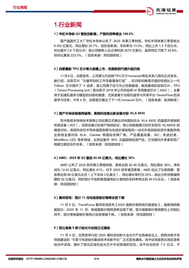 东海证券:电子行业周报:华虹三季度营收创新高,谷歌最新TPU即将上市.pdf