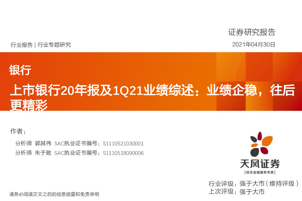 天风证券:上市银行20年报及1Q21业绩综述:业绩企稳,往后更精彩.pdf