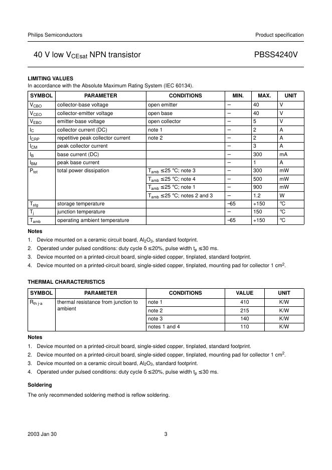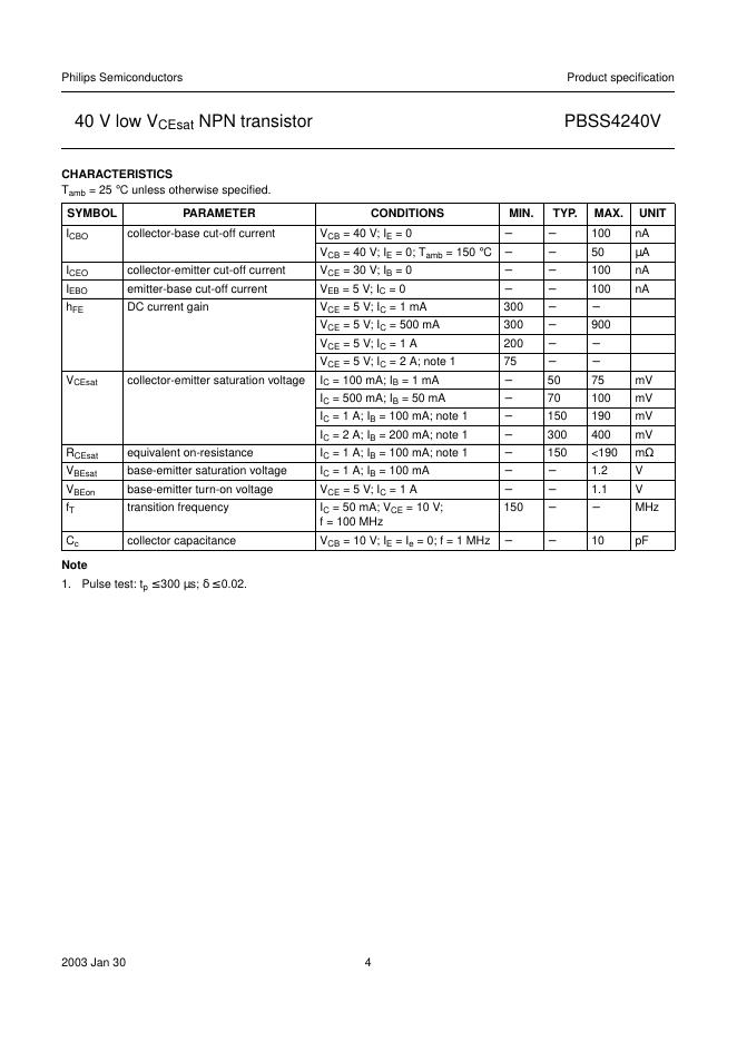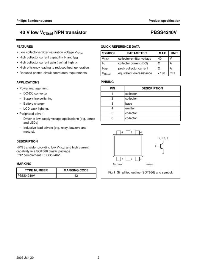 philips PBSS4240V 40 V low VCEsat NPN transistor 数据手册.pdf