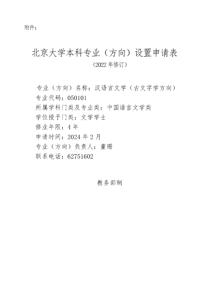 北京大学本科专业(方向)设置申请表(2022年修订)汉语言文学(古文字学方向).pdf