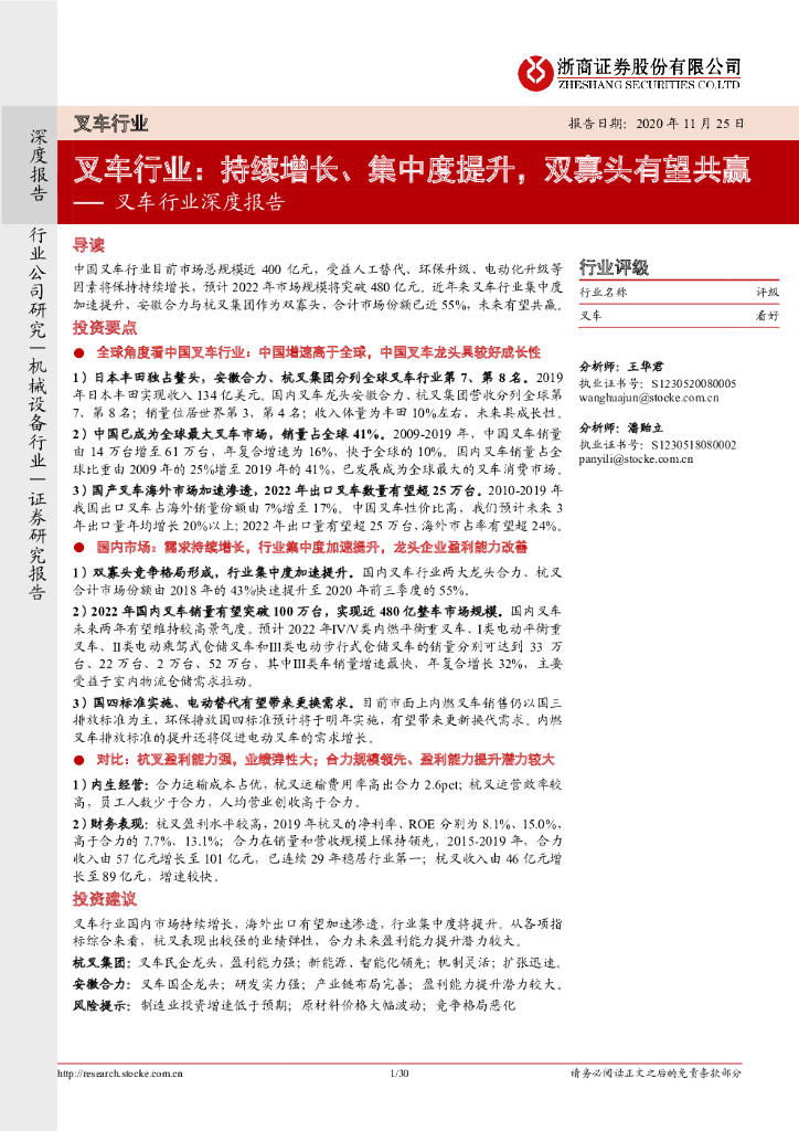 浙商证券:叉车行业深度报告:叉车行业:持续增长、集中度提升,双寡头有望共赢.pdf