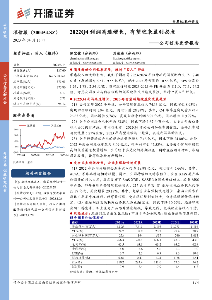 开源证券:深信服(300454)-公司信息更新报告:2022Q4利润高速增长,有望迎来盈利拐点.pdf