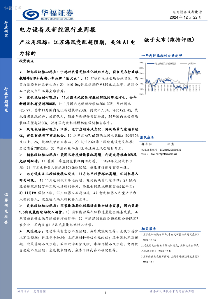 华福证券:电力设备及新能源行业周报:产业周跟踪,江苏海风竞配超预期,关注AI电力标的.pdf