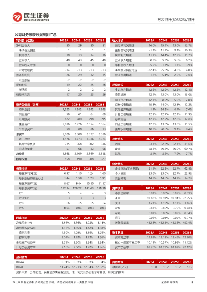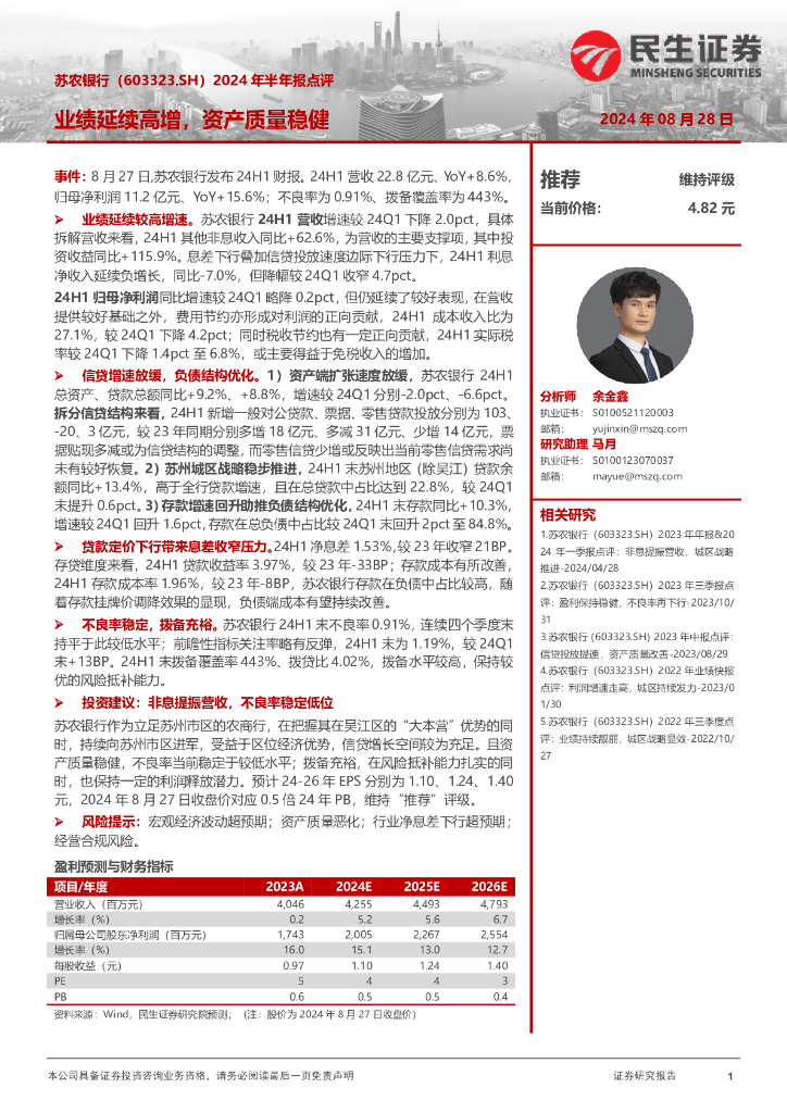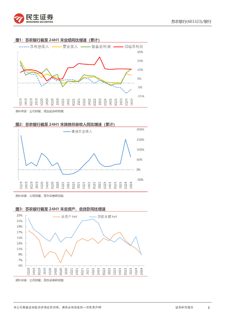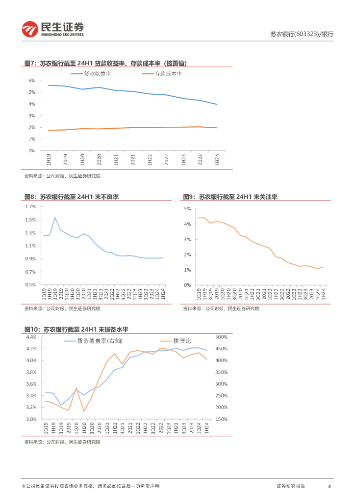民生证券:苏农银行(603323)-2024年半年报点评:业绩延续高增,资产质量稳健.pdf