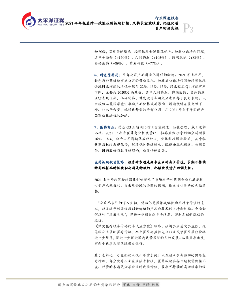 太平洋证券:医药2021半年报总结:政策压制板块行情,风物长宜放眼量,把握优质资产回调良机.pdf