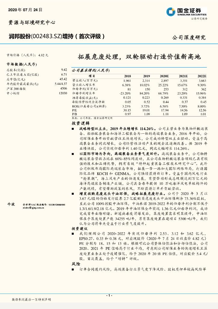 国金证券:润邦股份(002483)-拓展危废处理,双轮驱动打造价值新高地.pdf