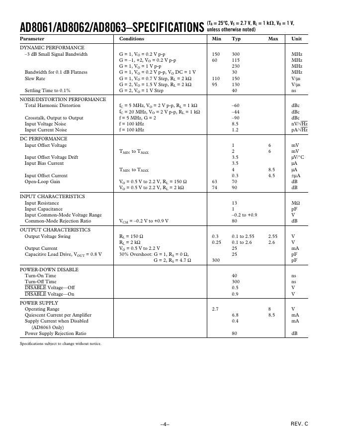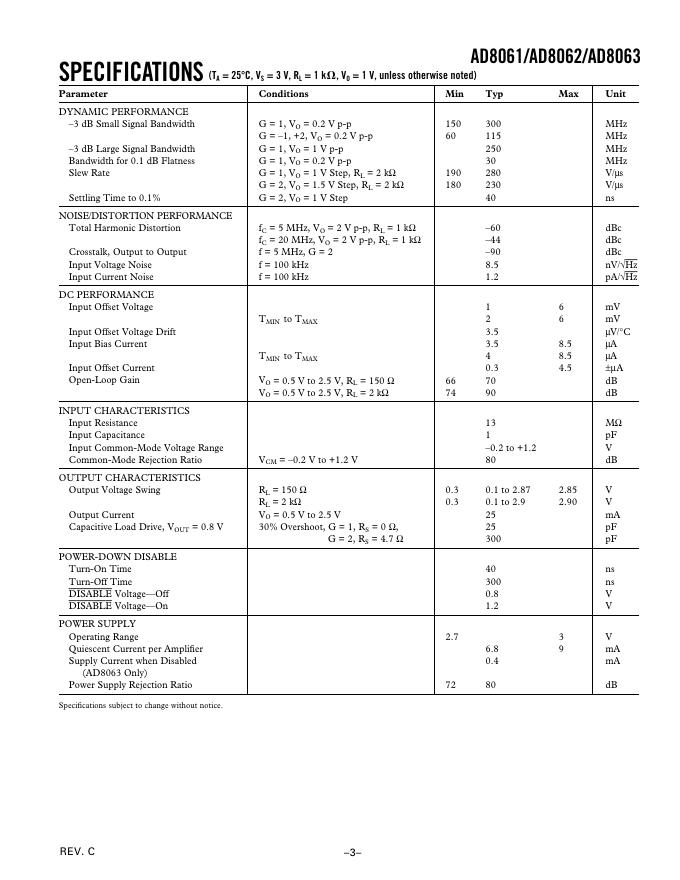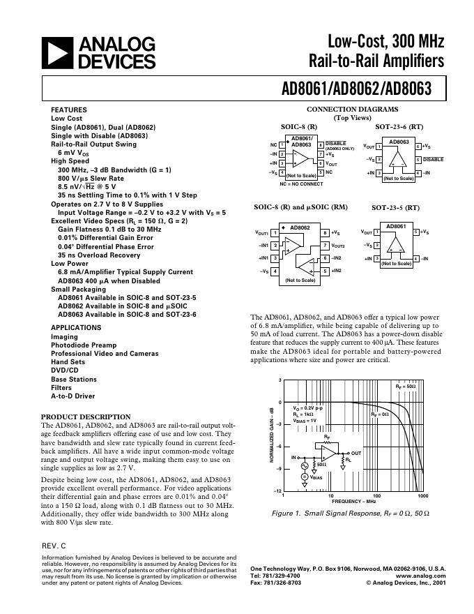 ANALOG DEVICES -AD8061/AD8062/AD8063 数据手册.pdf