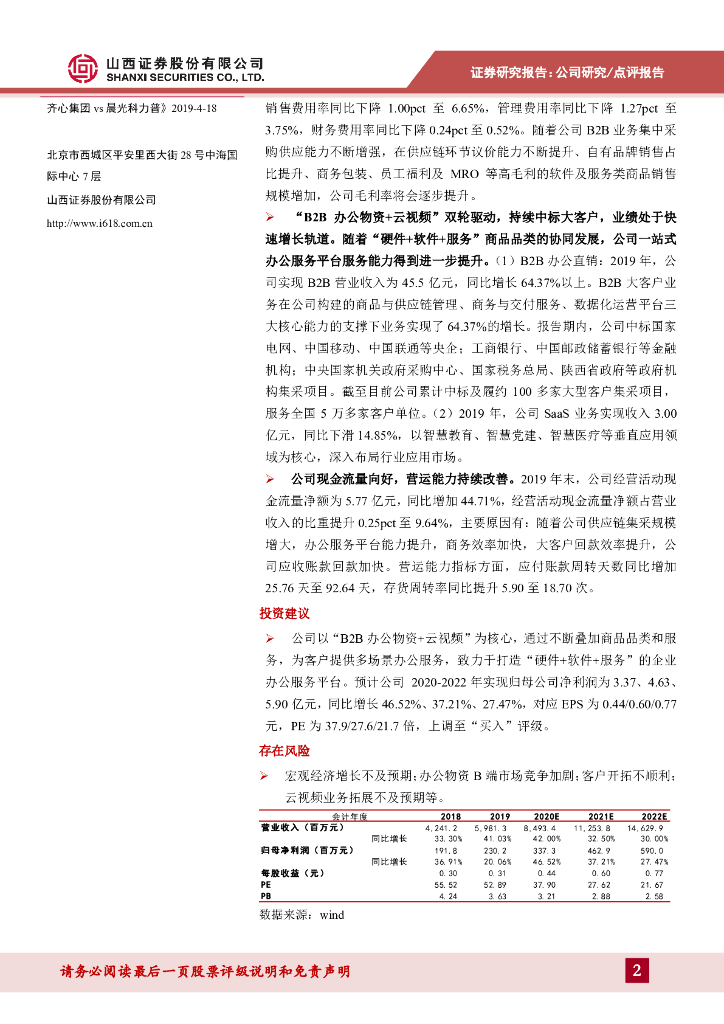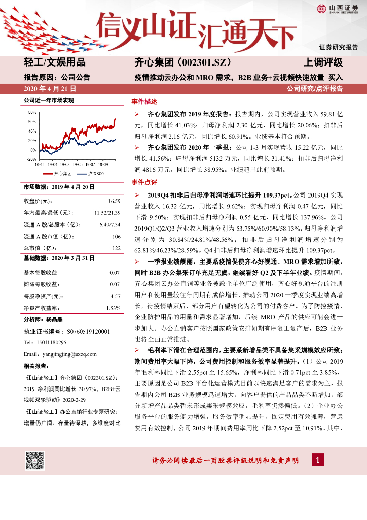 山西证券:齐心集团(002301)-疫情推动云办公和MRO需求,B2B业务+云视频快速放量.pdf