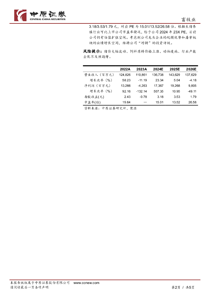 中原证券:牧原股份(002714)-2023年年报及2024年一季报点评,业绩短期承压,屠宰产能持续释放.pdf