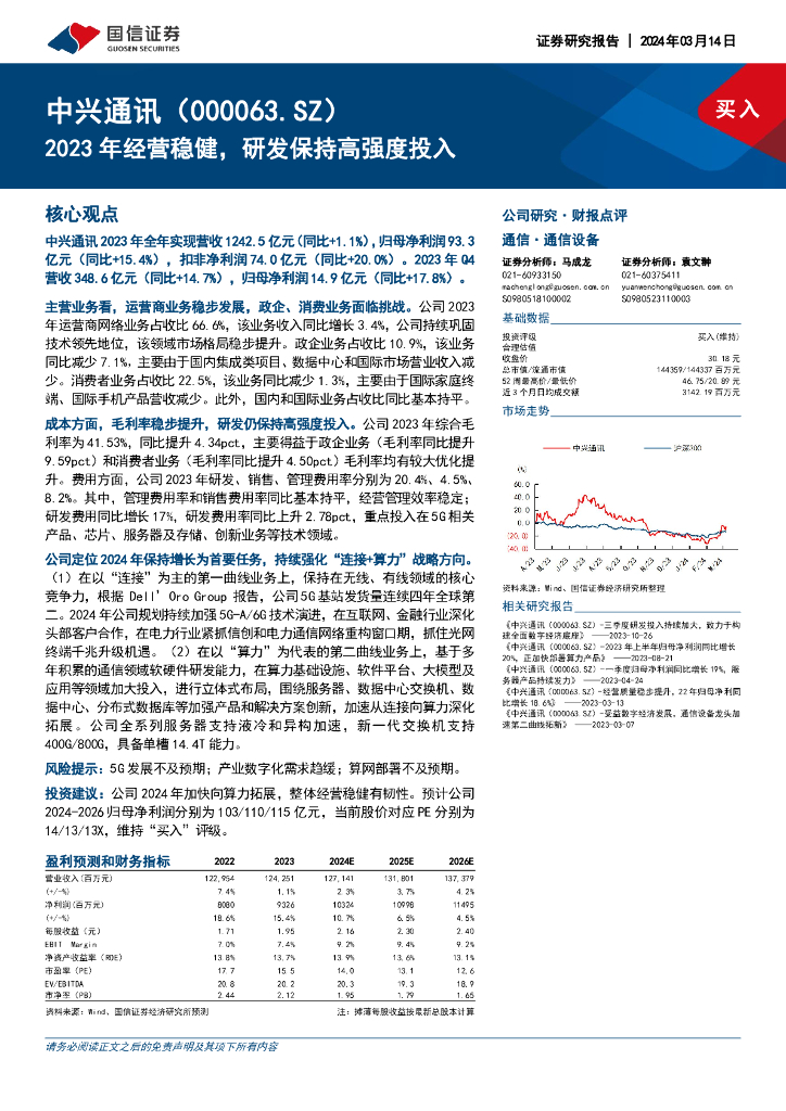 国信证券:中兴通讯(000063)-2023年经营稳健,研发保持高强度投入.pdf