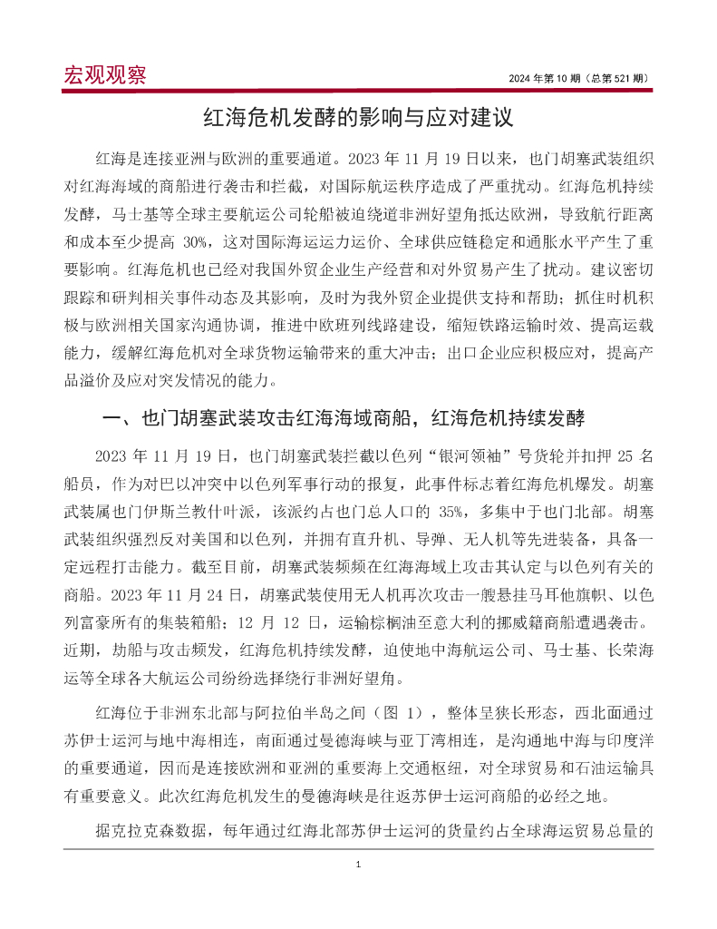 中银研究:《宏观观察》2024年第10期:红海危机发酵的影响与应对建议.pdf