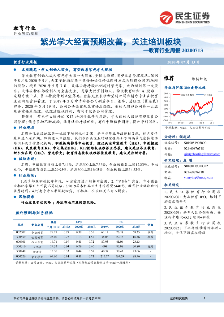 民生证券:教育行业周报:紫光学大经营预期改善,关注培训板块.pdf