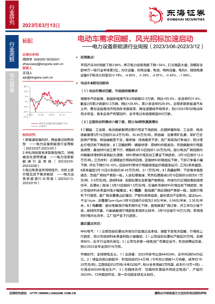 东海证券:电力设备新能源行业周报:电动车需求回暖,风光招标加速启动.pdf