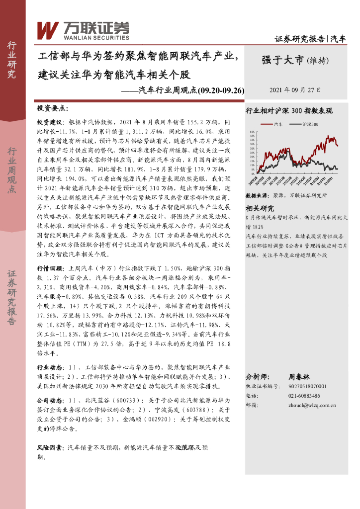 万联证券:汽车行业周观点:工信部与华为签约聚焦智能网联汽车产业,建议关注华为智能汽车相关个股.pdf