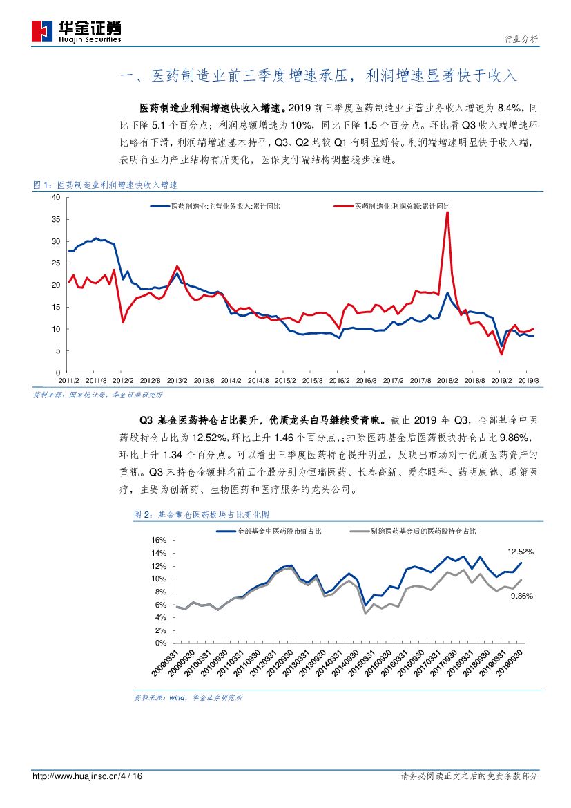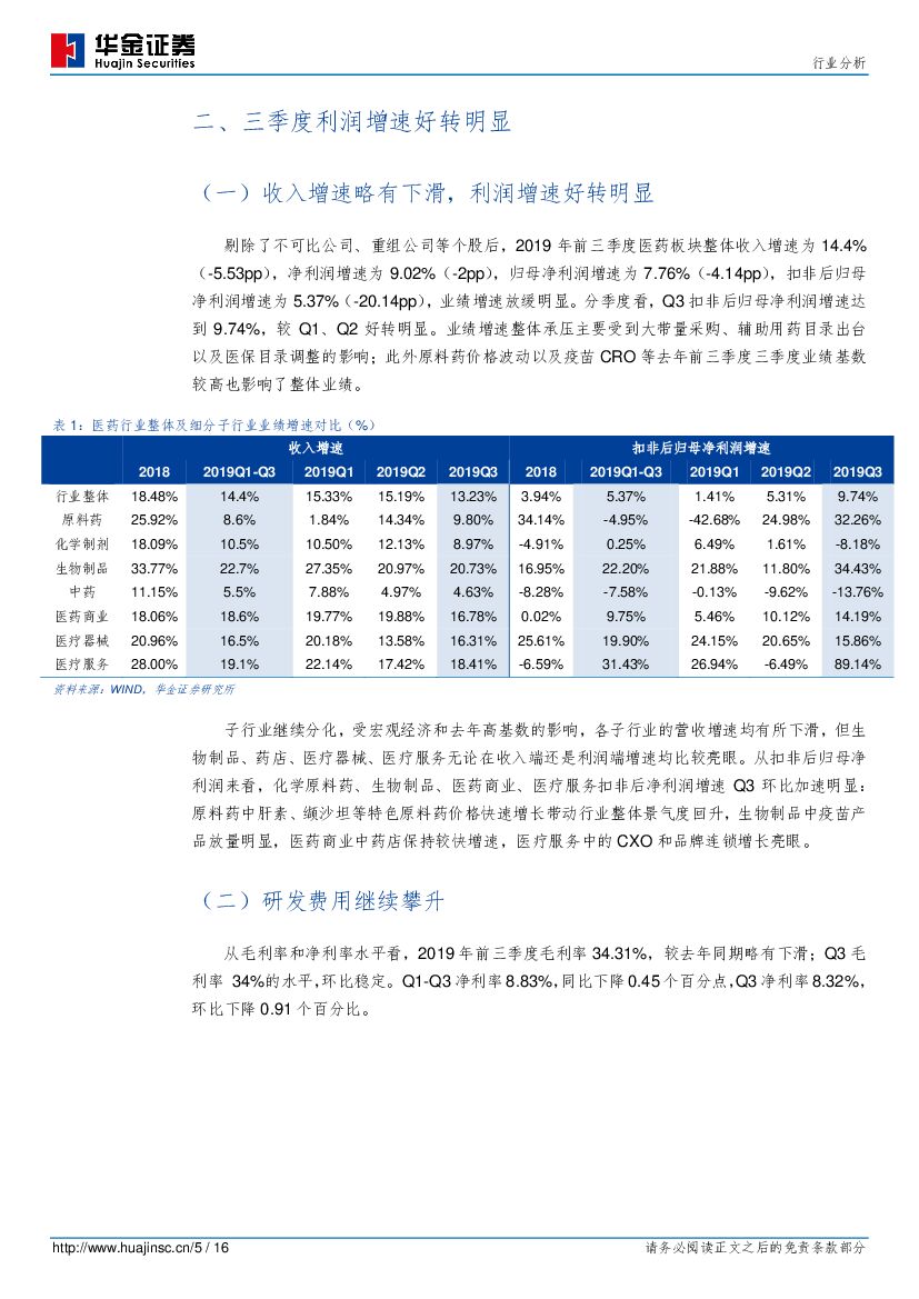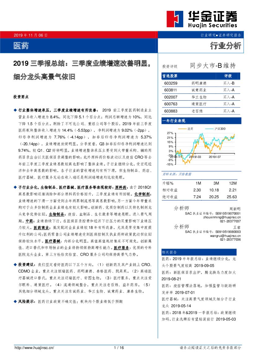 华金证券:医药:2019三季报总结:三季度业绩增速改善明显,细分龙头高景气依旧.pdf