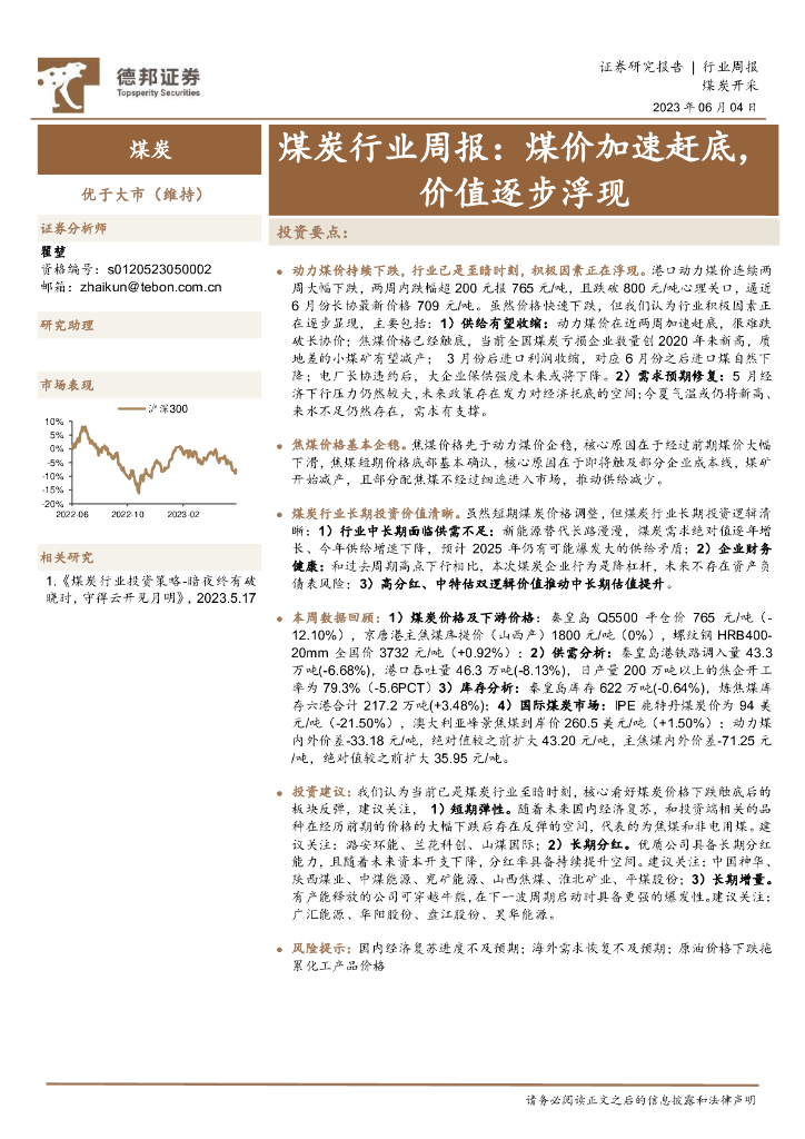 德邦证券:煤炭行业周报:煤价加速赶底,价值逐步浮现.pdf