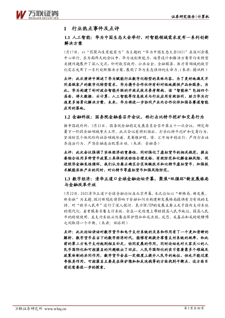 万联证券:计算机行业周观点:华为生态大会召开,国务院强调金融风险防范.pdf