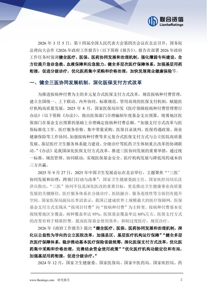 联合资信评估:2026年政府工作报告医药卫生领域内容解读:健全多层次医疗保障体系,加码社会保障力度-260316.pdf