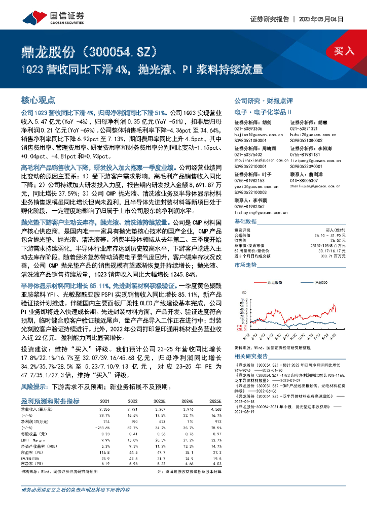 国信证券:鼎龙股份(300054)-1Q23营收同比下滑4%,抛光液、PI浆料持续放量.pdf