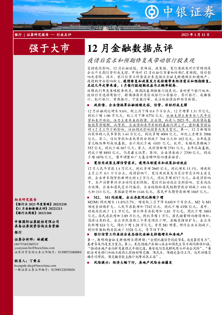 中银证券:银行行业12月金融数据点评:疫情后需求和预期修复或带动银行股表现.pdf