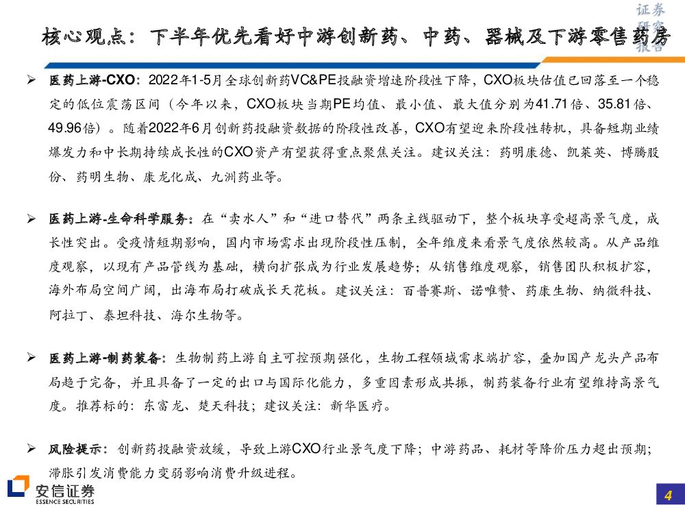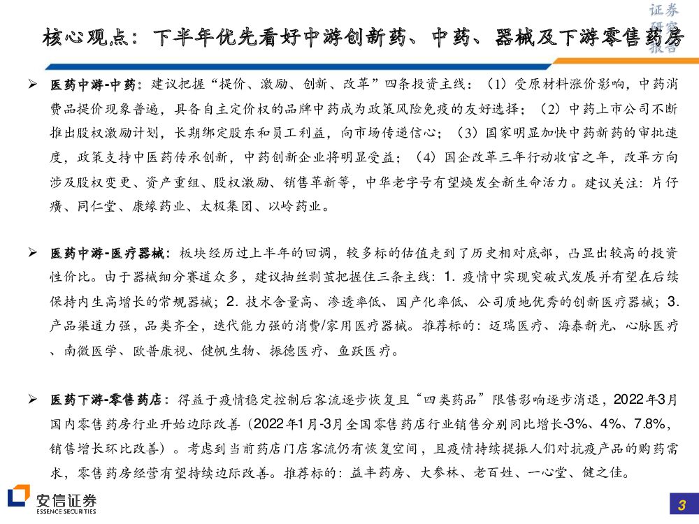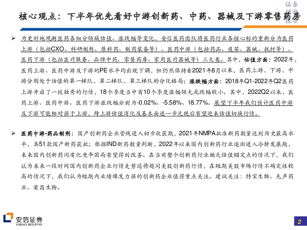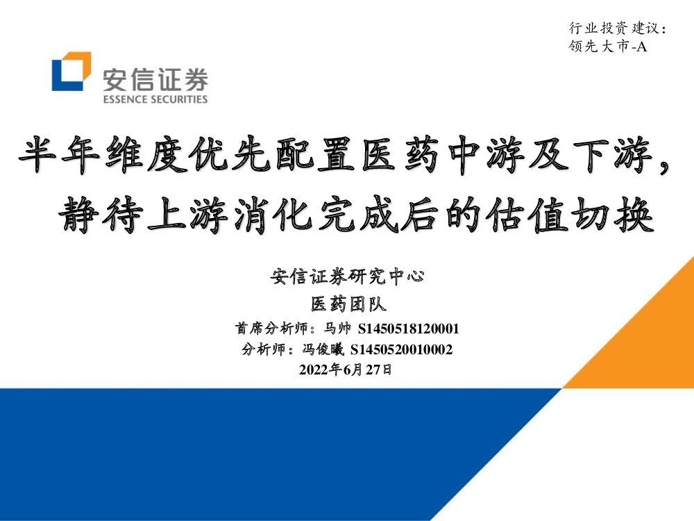 安信证券:医药:半年维度优先配置医药中游及下游,静待上游消化完成后的估值切换.pdf