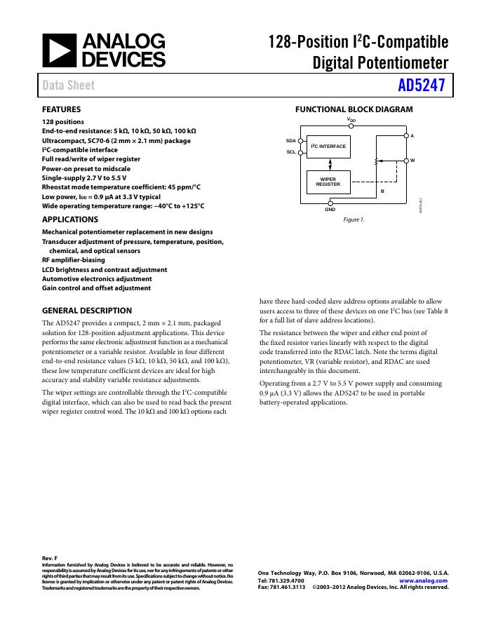 ANALOG DEVICES AD5247 英文产品数据手册.pdf