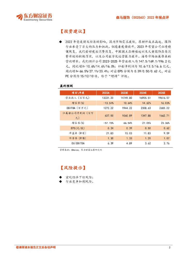 东方财富证券:森马服饰(002563)-2022年报点评:疫情影响业绩承压,看好后续业绩弹性.pdf