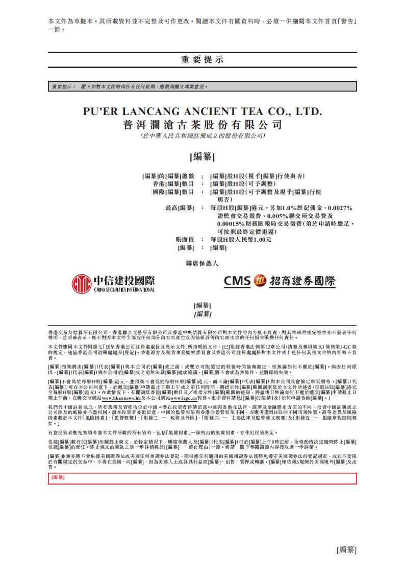 普洱澜沧古茶港交所IPO上市招股说明书2022年更新版:冲击港股“普洱茶IPO第一股”.pdf
