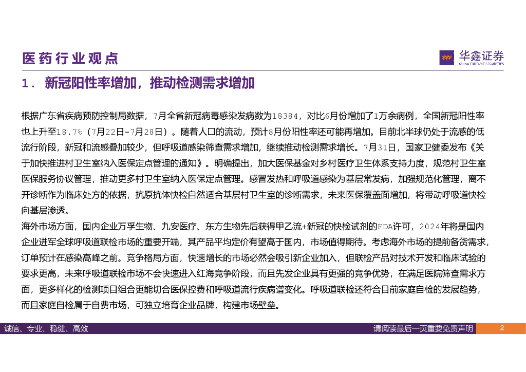 华鑫证券:医药行业周报:新冠流行增加,关注检测端的机会.pdf