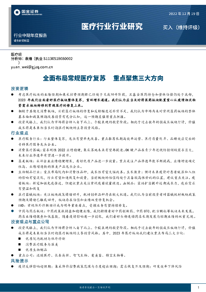 国金证券:医疗行业行业研究:全面布局常规医疗复苏 重点聚焦三大方向.pdf