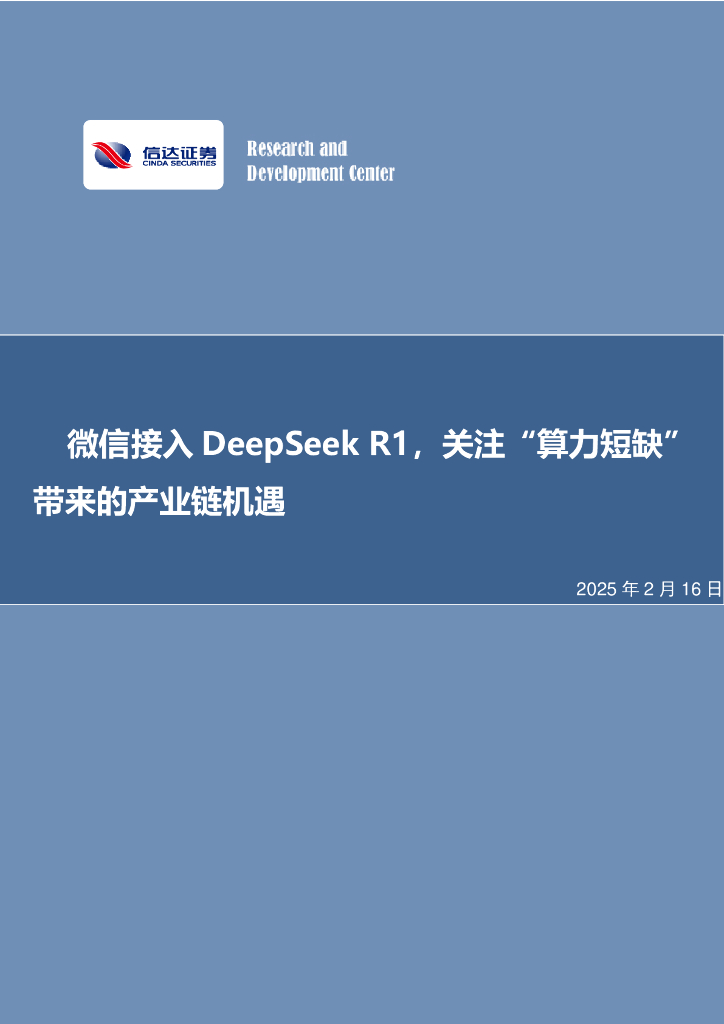 信达证券:微信接入DeepSeekR1,关注“算力短缺”带来的产业链机遇.pdf