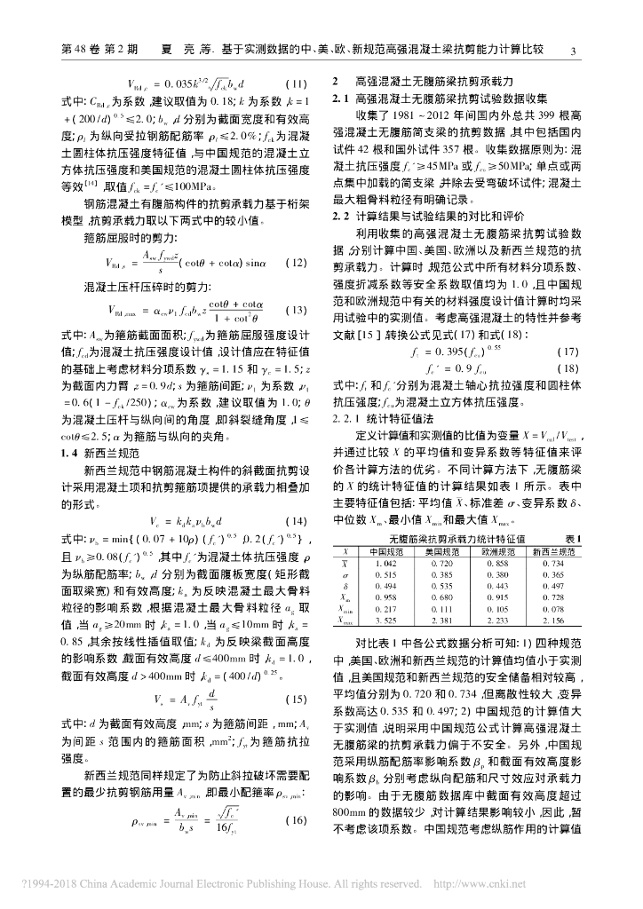 基于实测数据规范高强混凝土梁抗剪能力计算.pdf
