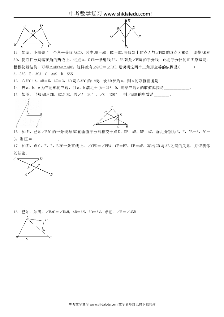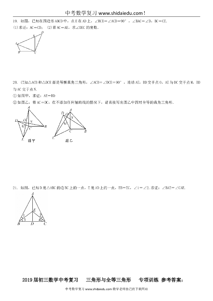 届初三数学中考复习--三角形与全等三角形--专项训练-含答案.doc